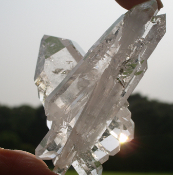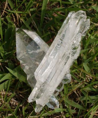 この筋から、左右に結晶が発達した水晶の事。